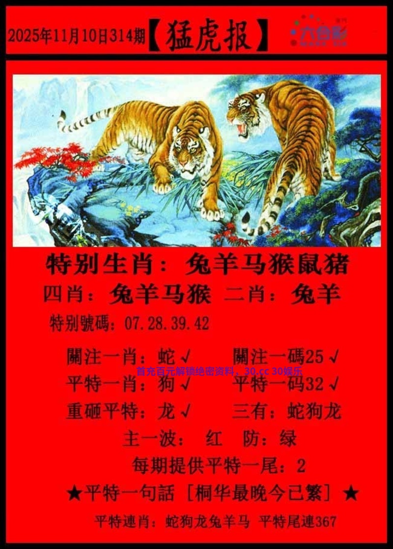 | 315期:√左右中特√【右肖】开:虎04准 |